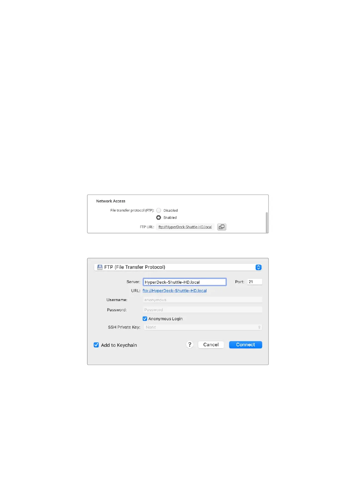 ftpclient and your HyperDeck Shuttle HD’s IP address or the FTP URL in the HyperDeck