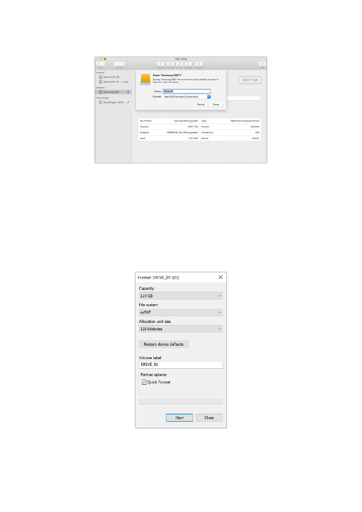 使用Windows PC的格式化对话框可将硬盘格式化为exFAT。由 于 格 式 化 后 SSD硬盘或SD卡内所有文