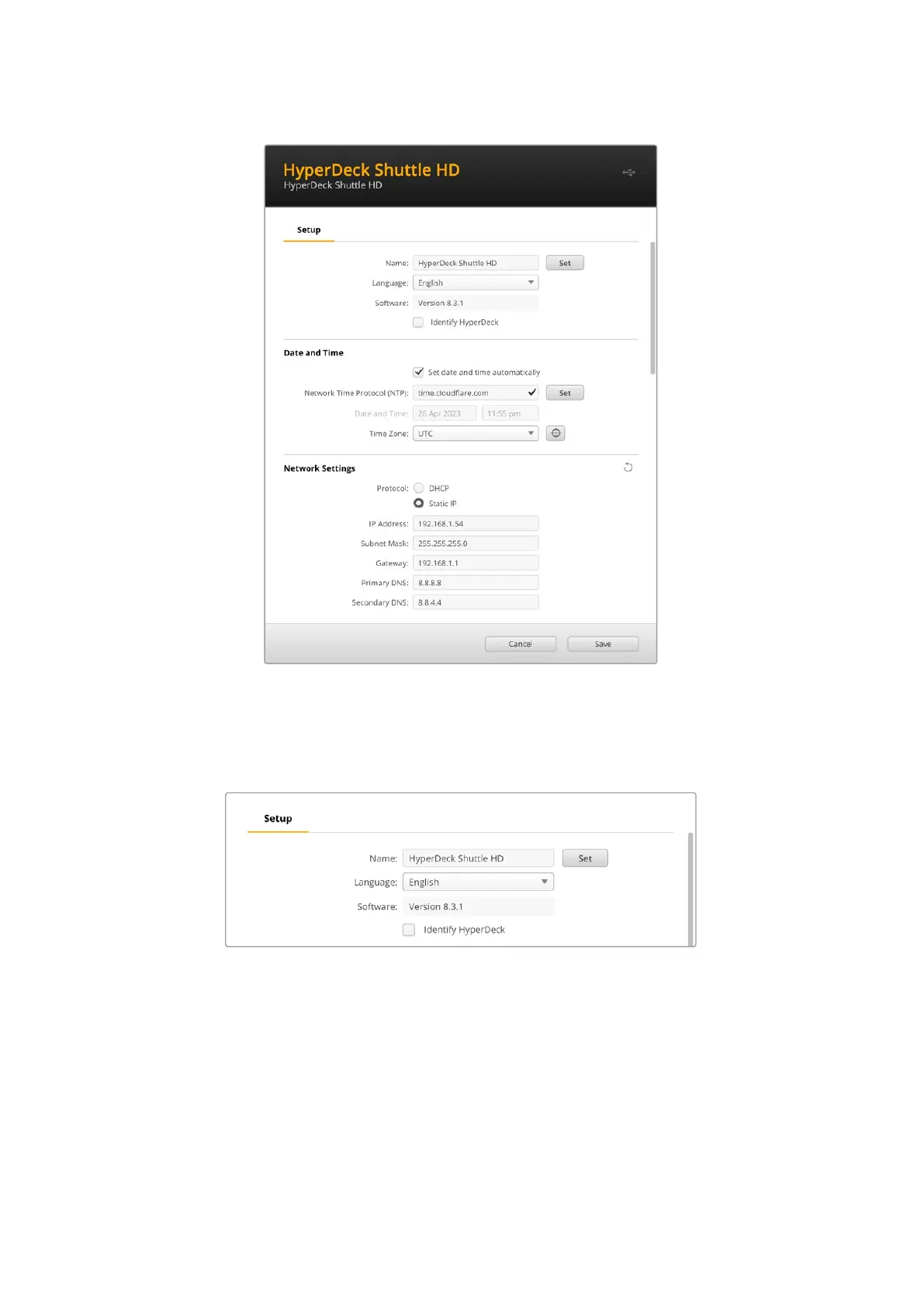 HyperDeck Shuttle,想要识别出哪一台是您通过HyperDeck Setup实用程序所连接的设备时,这个