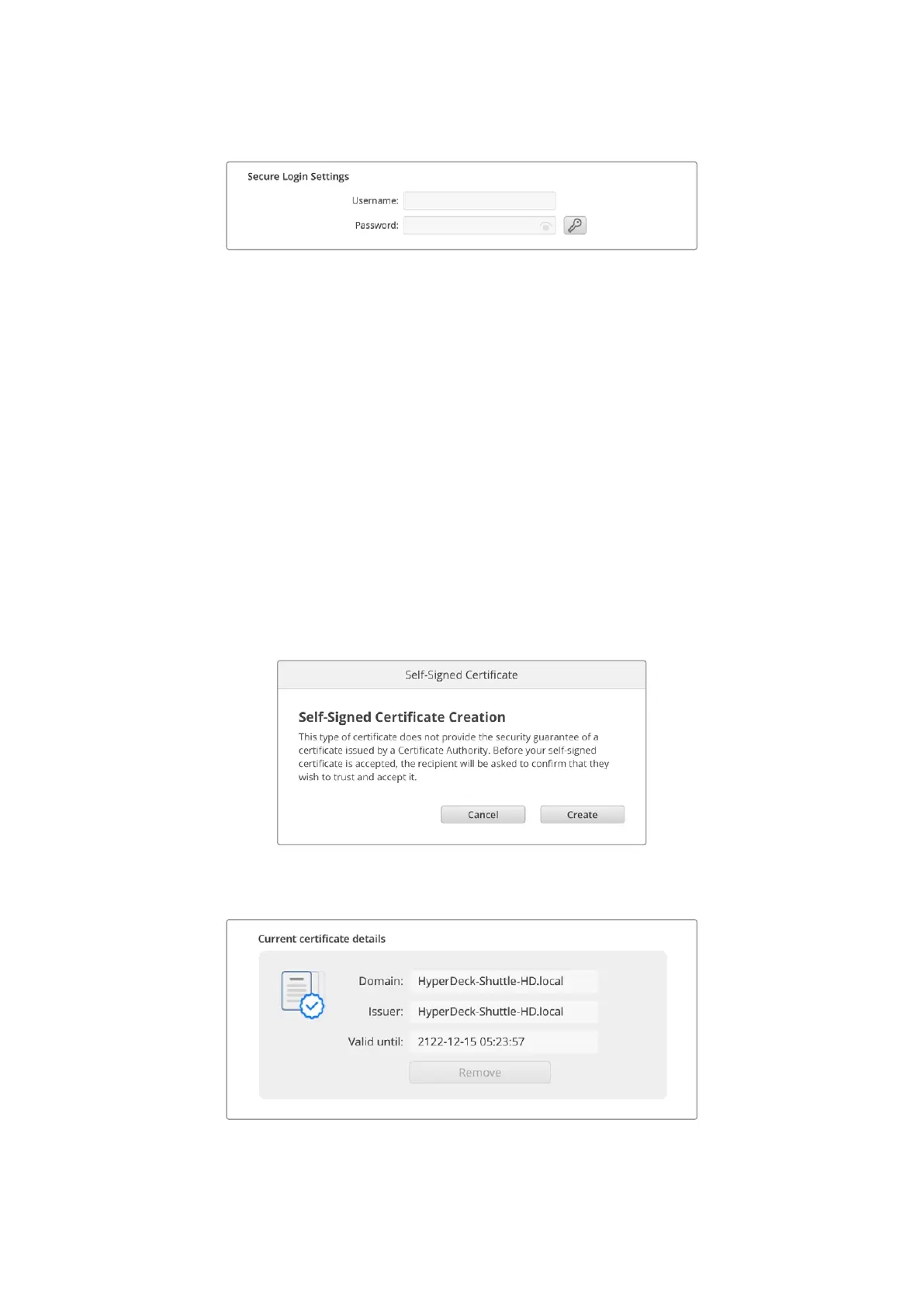 名证书。对于某些用户的工作流程,例如仅通过本地网络访问HyperDeck Shuttle HD的 情 况 ,自 签 名
