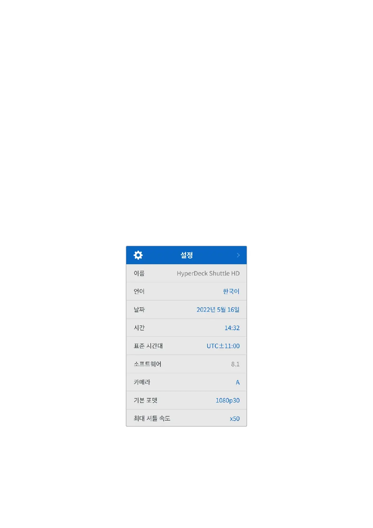 Blackmagic HyperDeck 이더넷 프로토콜을 통해서도 설정할 수 있습니다. 해당 이름은 ‘설정’ 메뉴에