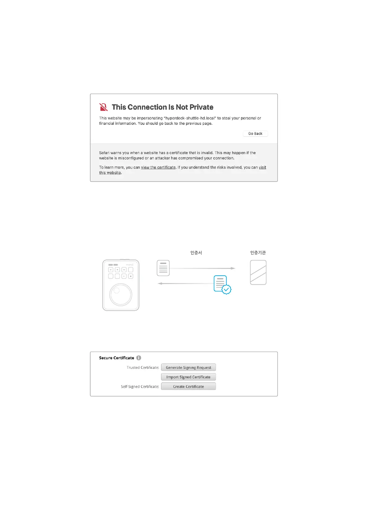 pem 파일 확장자 포맷의 서명 인증서가 되돌아오는데, 이를 HyperDeck Shuttle HD에 임포트할 수