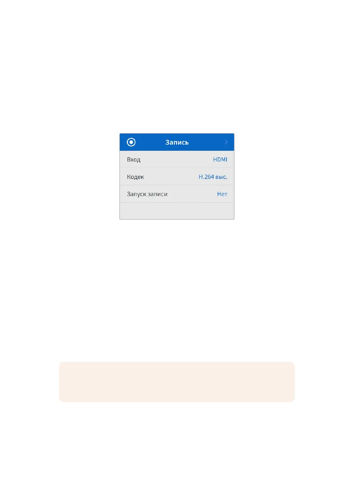 опции сохранение на HyperDeck будет начинаться ипрекращаться при соответствующем