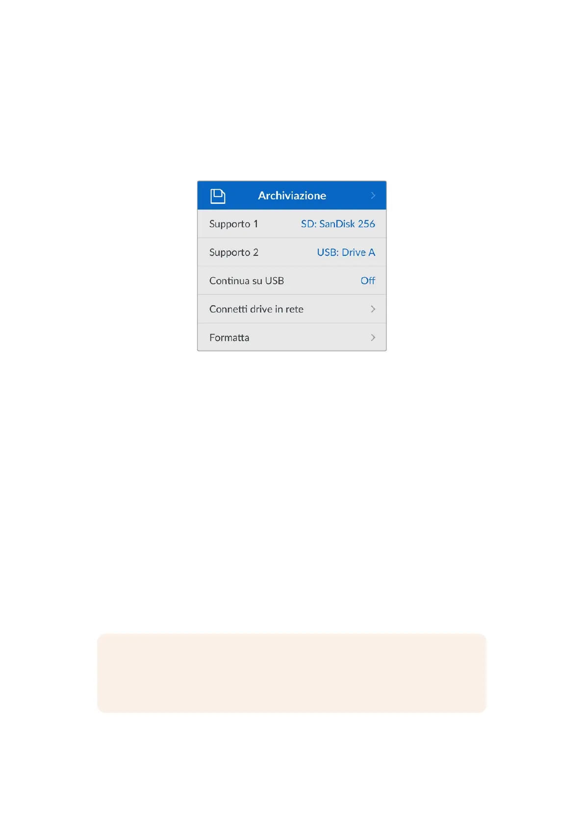 Queste impostazioni si riferiscono ai supporti di memoria collegati. Supporto 1 mostra il nome