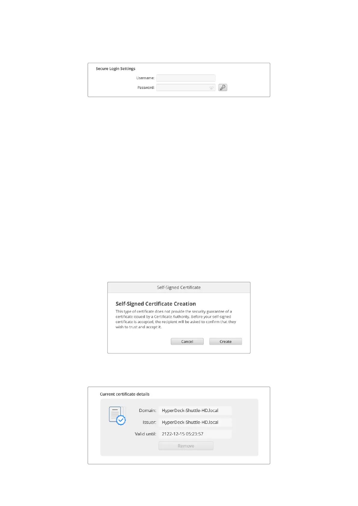 Ci sono due tipi di certificato utilizzabili con HyperDeck Shuttle: un certificato di sicurezza