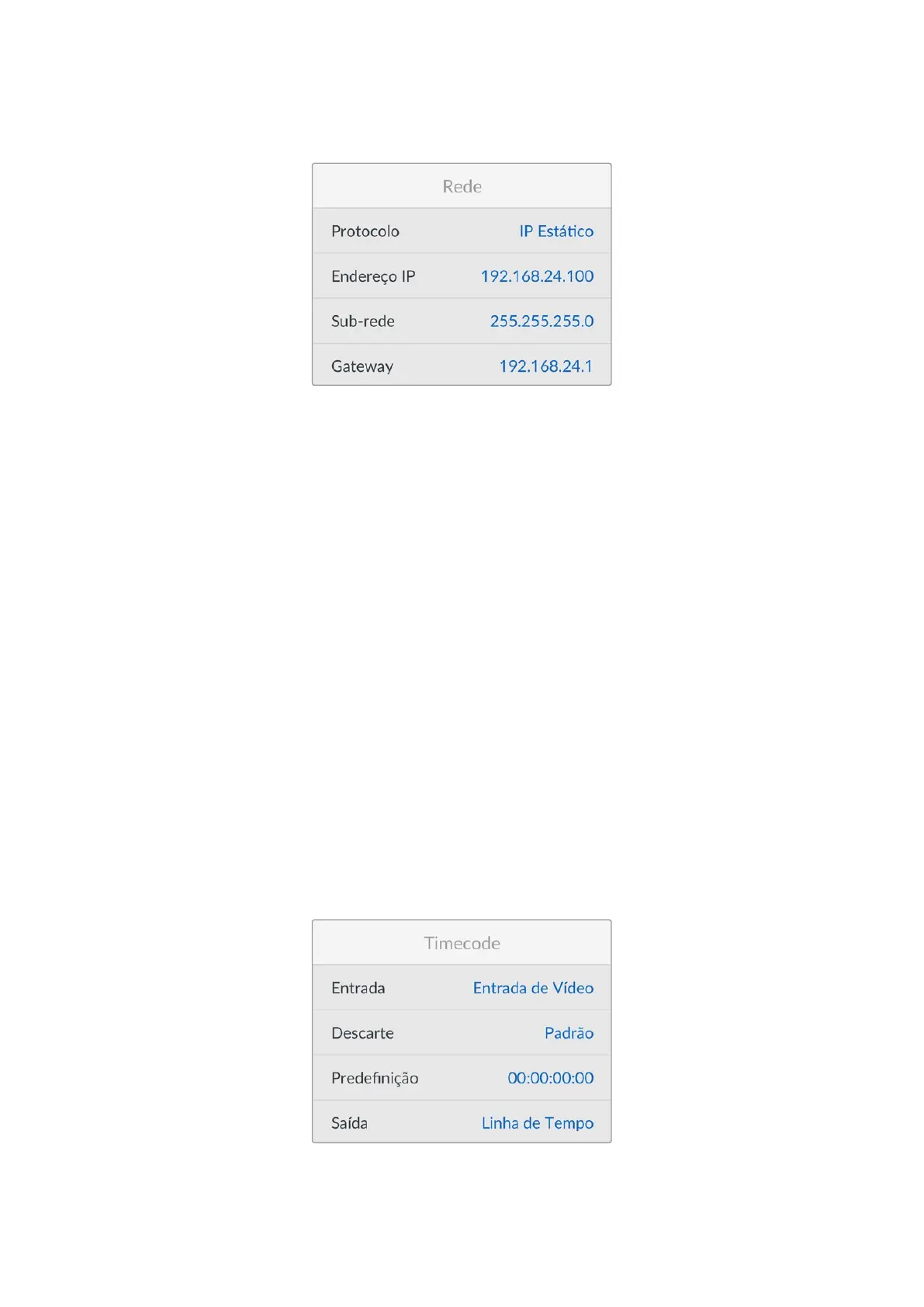 Endereço IP, Máscara de Sub-rede, Gateway, DNS Primário e DNS Secundário