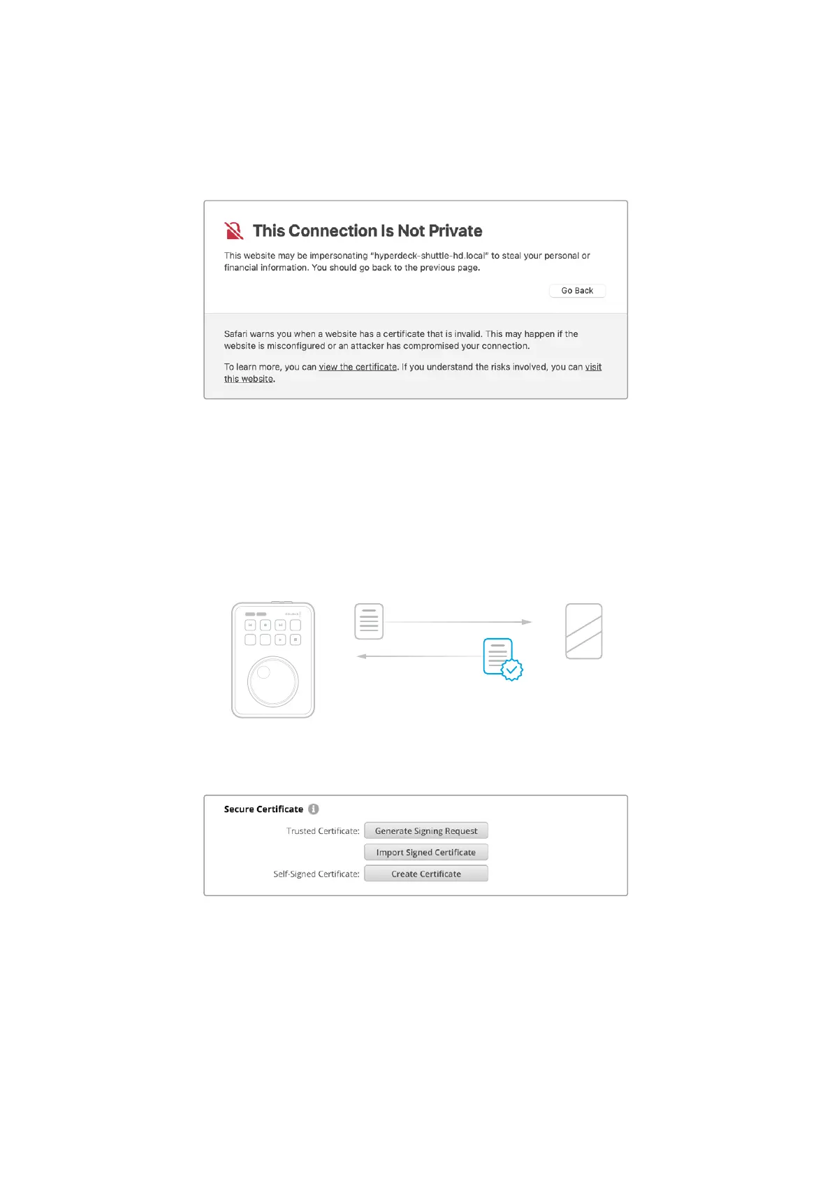 de arquivo .cert, .crt ou .pem, que você pode importar para o HyperDeck Shuttle HD.