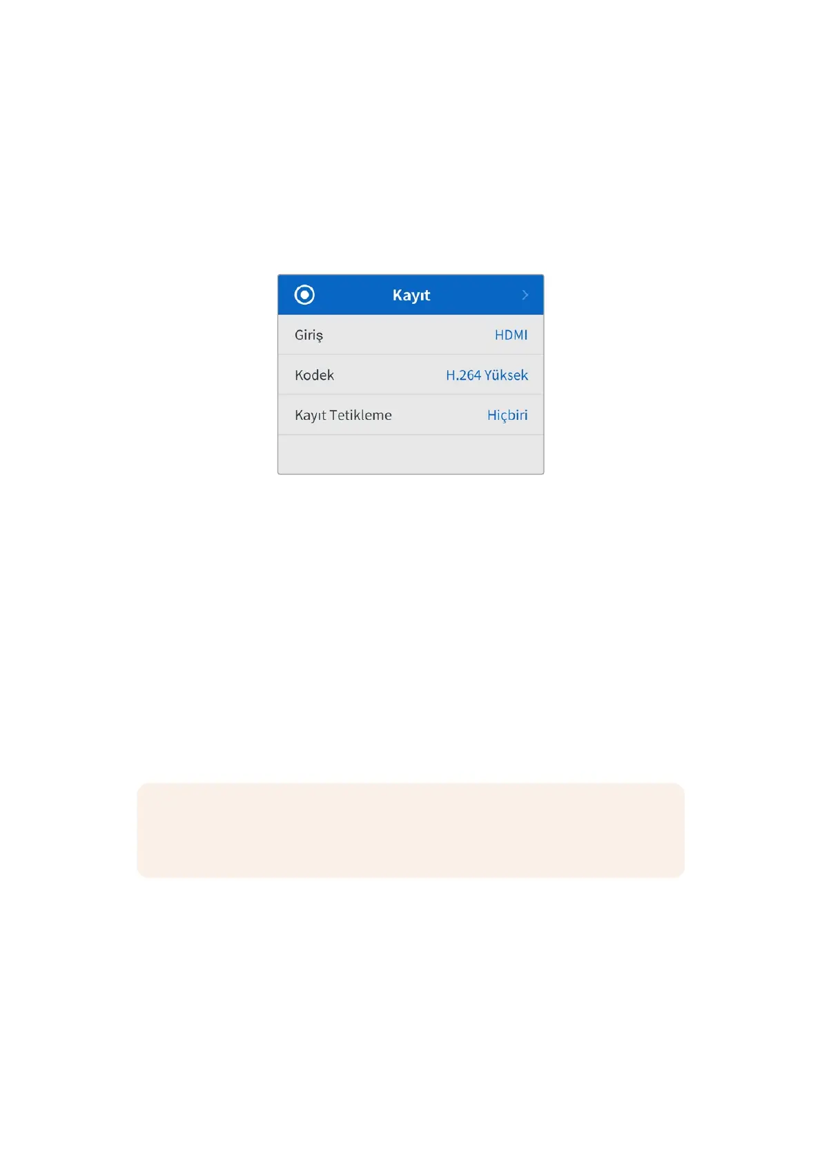 NOT Bir HDMI kameradan kayıt yaparken, kameranızın video çıkışında bulunan