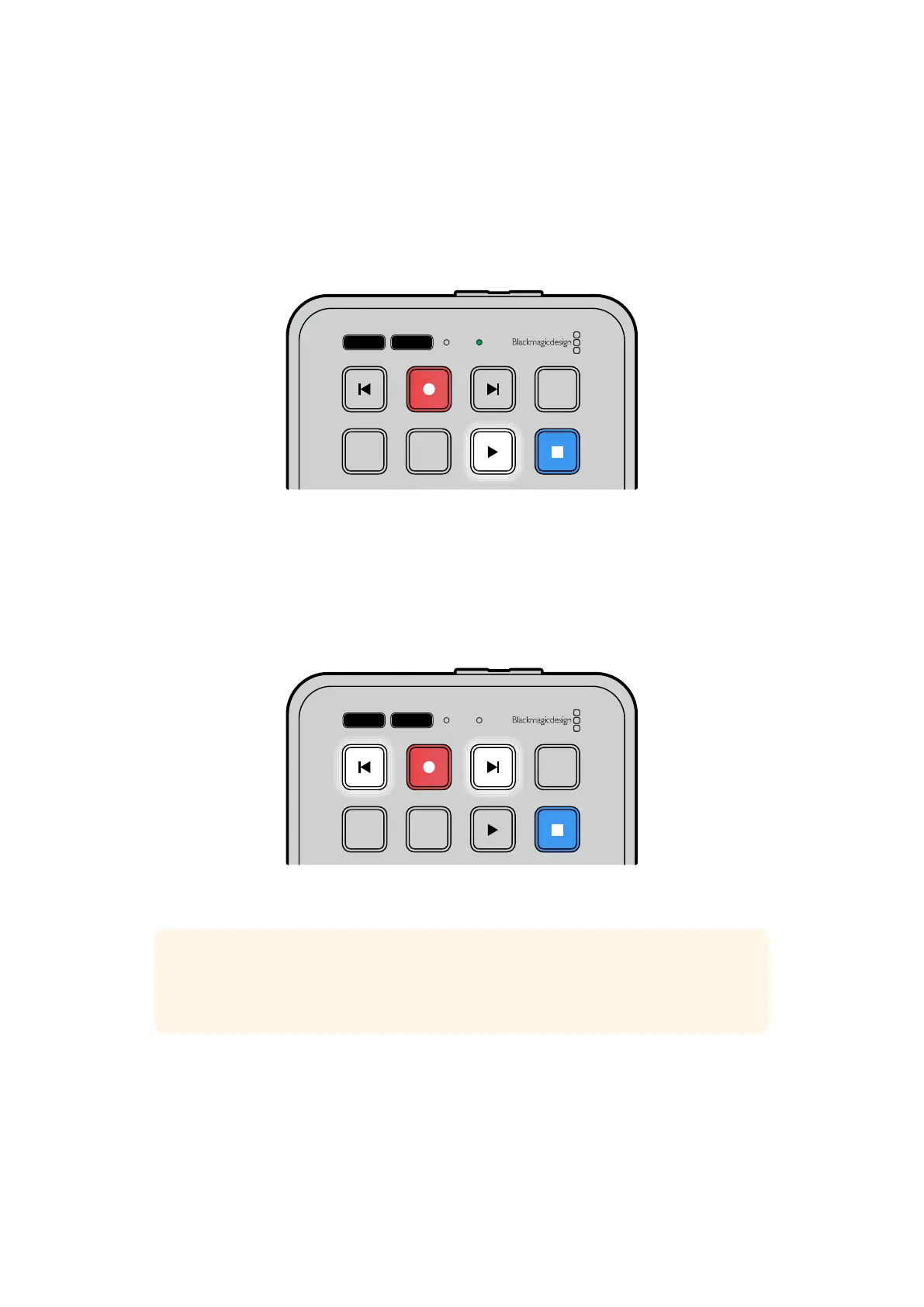 再生中に、再生ボタンを再び押すと、HyperDeck Shuttle HDは す べ て の ク リ ップ を ル ープ し ま す。停 止