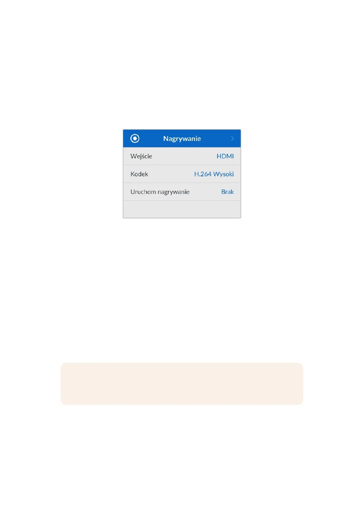 UWAGA Podczas nagrywania z kamery HDMI należy upewnić się, że wyjście jest