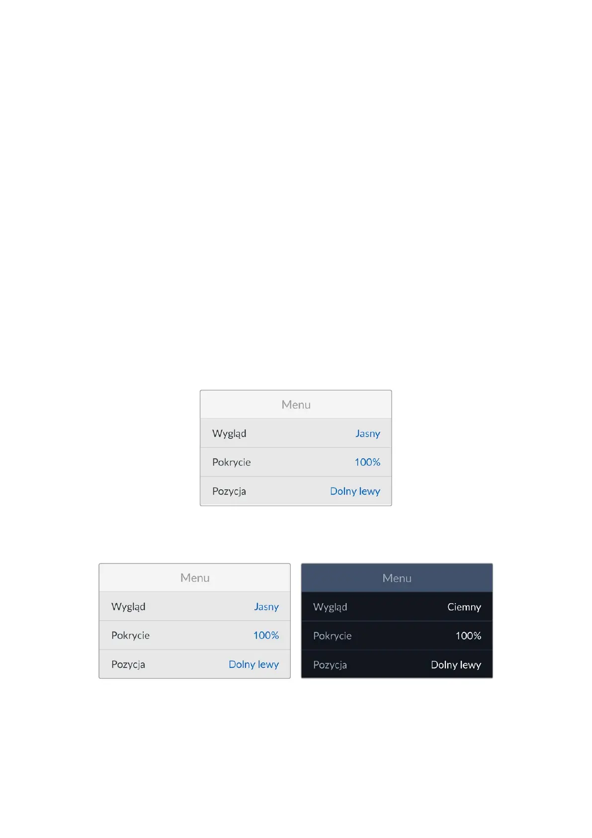 Ustaw menu ekranowe HyperDecka na tryb ciemny lub jasny. Tryb jasny oferuje większy