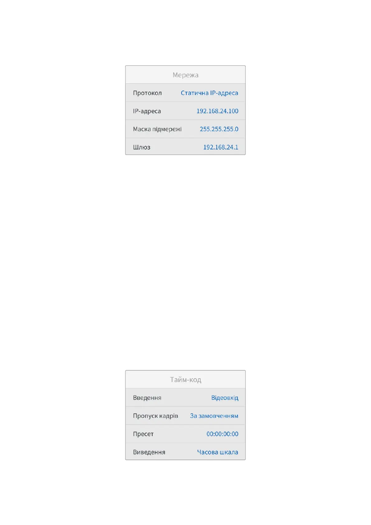 У рекордерах Blackmagic HyperDeck за замовчуванням використовується протокол DHCP.