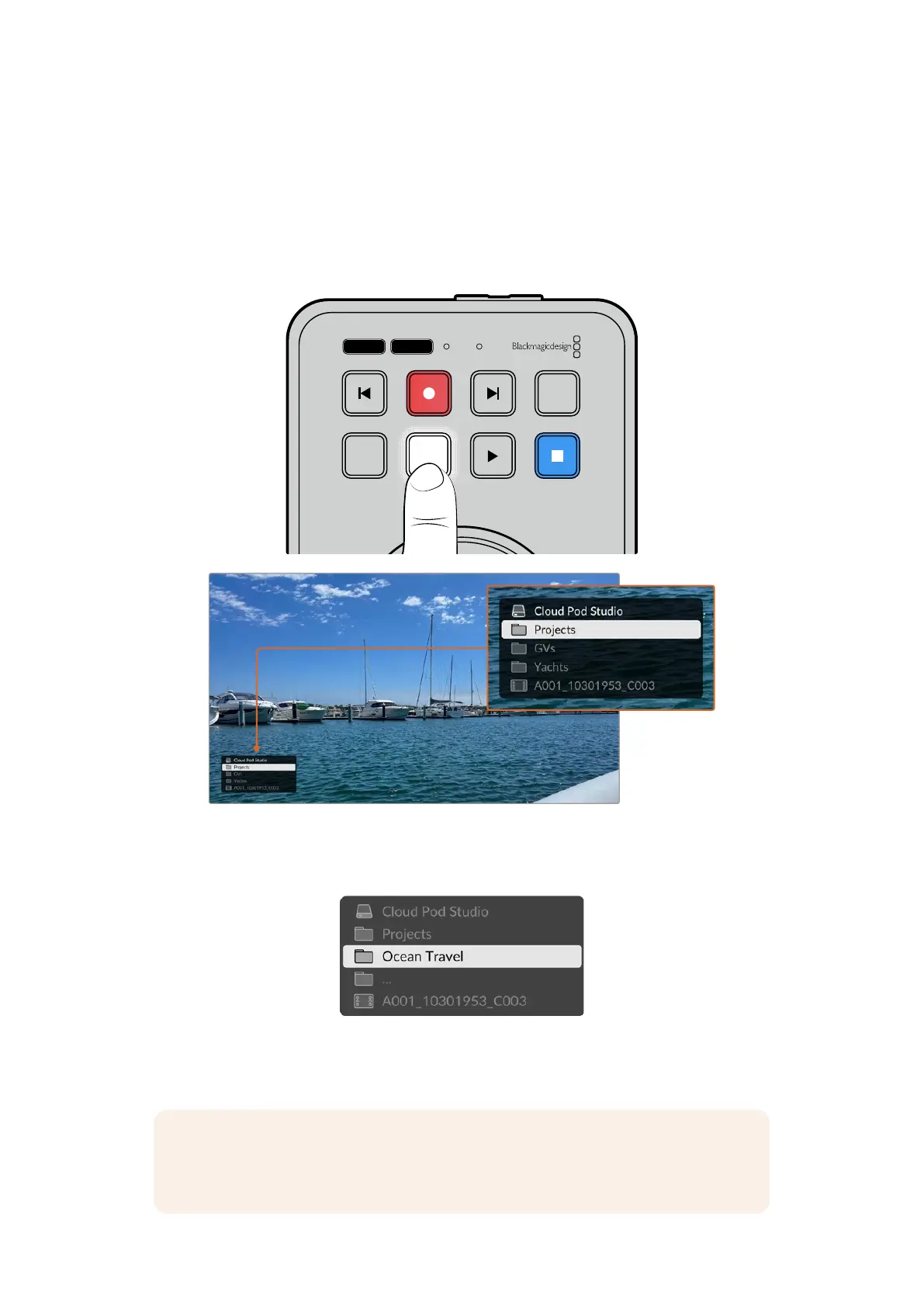 вікно, у якому можна переходити між папками за допомогою кнопок SCR і CLIP, а також
