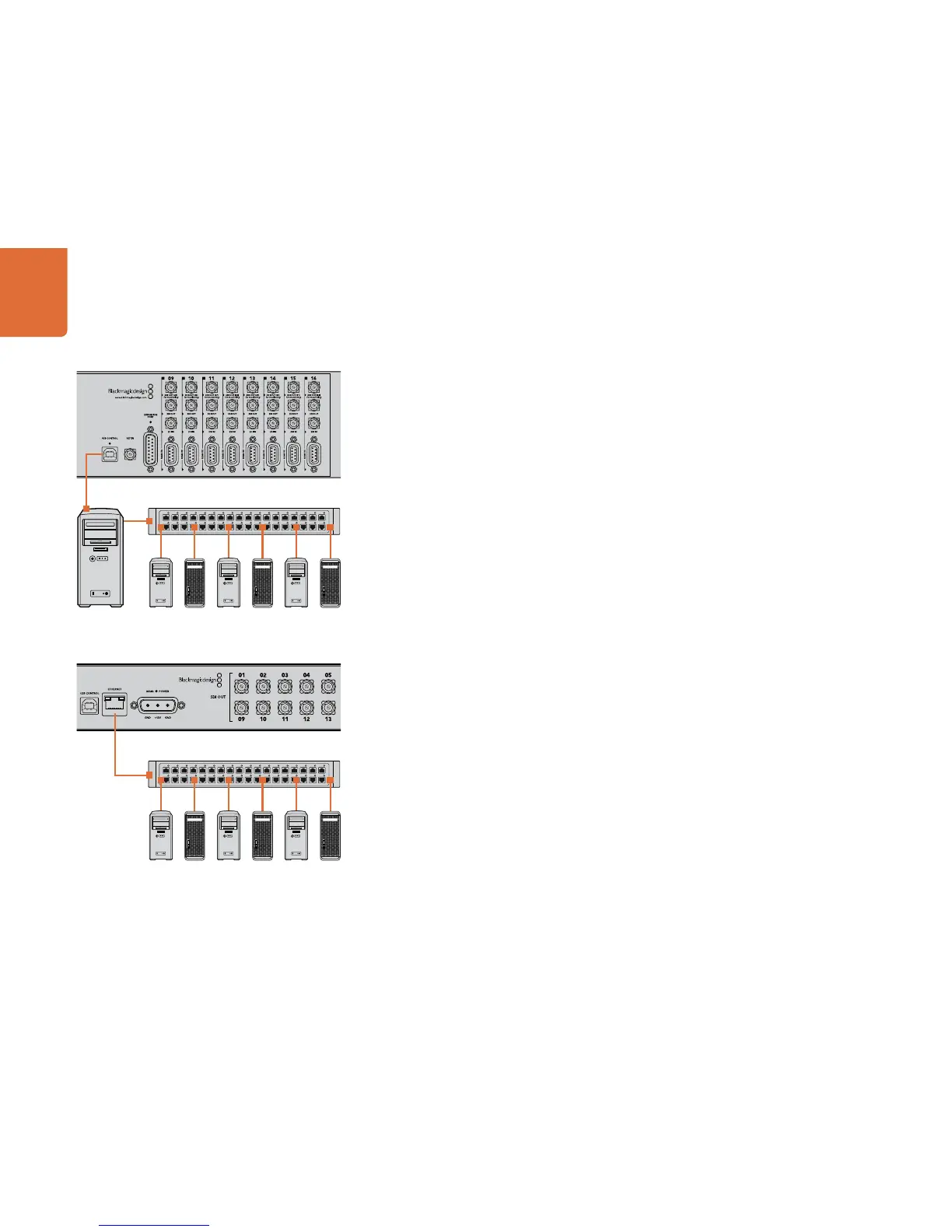 Many Videohub models have an Ethernet port and can connect directly to your Ethernet network switch