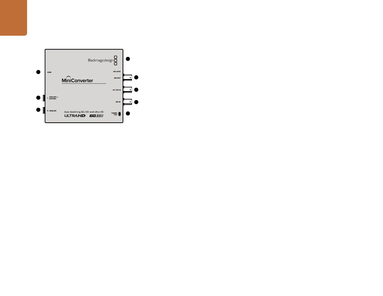 embedded audio, plus balanced AES/EBU or analog audio out. When connecting to Ultra HD sources