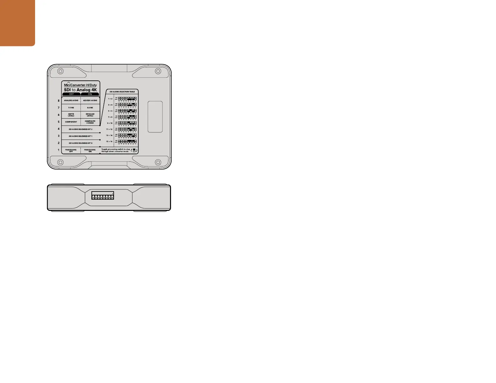 Mini Converter Heavy Duty SDI to Analog 4K's mini switches provide the following settings: