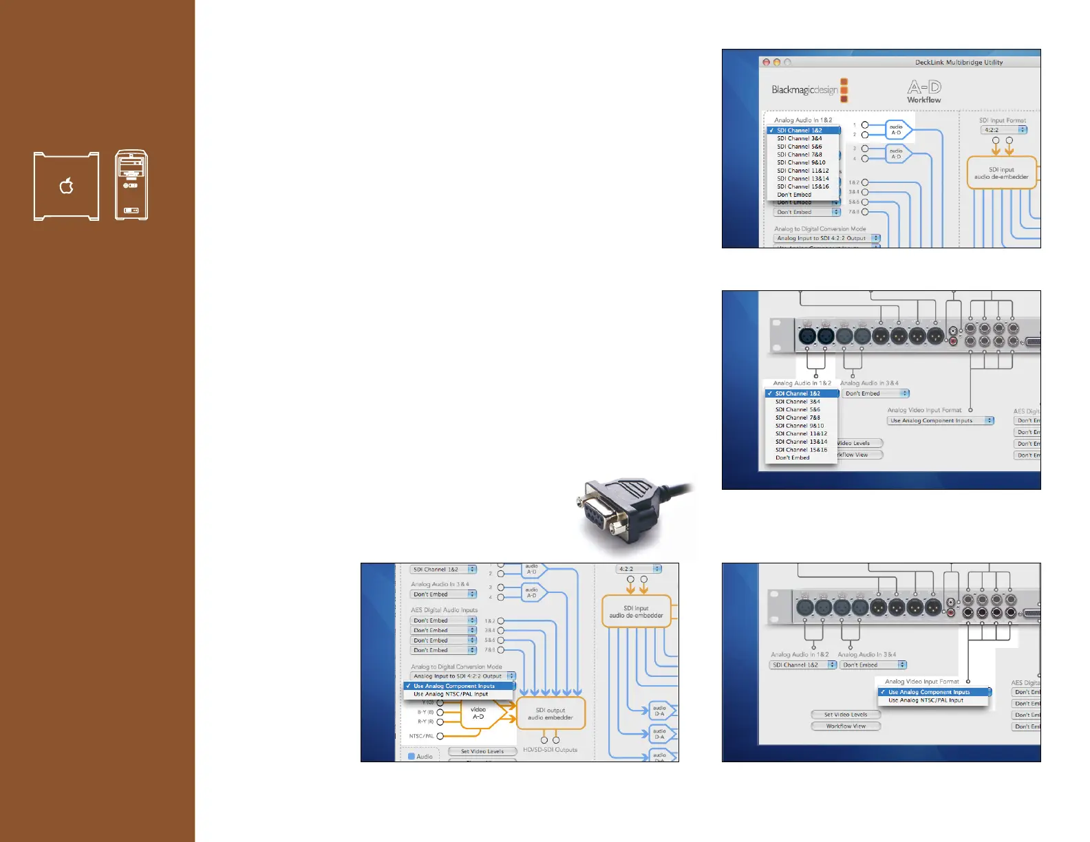 Sony BetacamSP™ deck to DeckLink SDI capture card via Multibridge.
