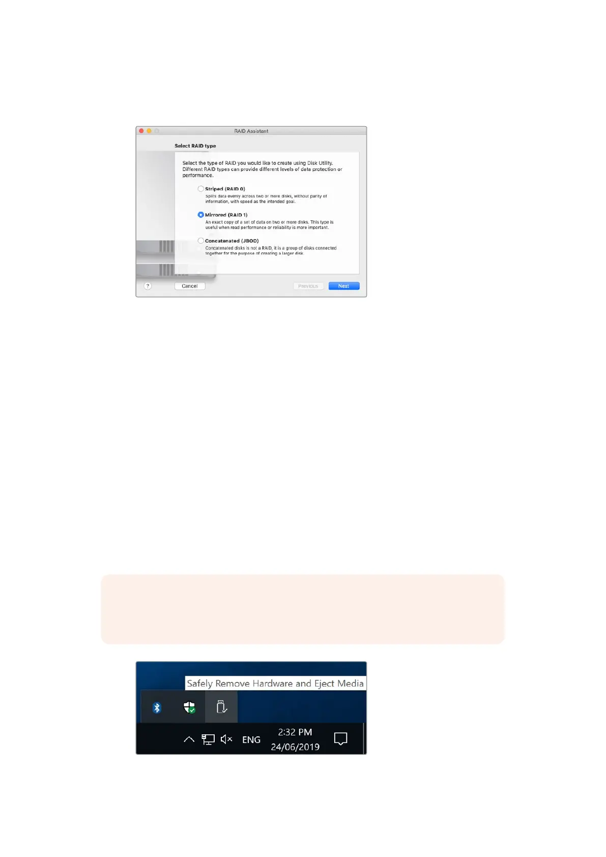 NOTE When using a RAID it’s important eject the drives before unplugging the RAID