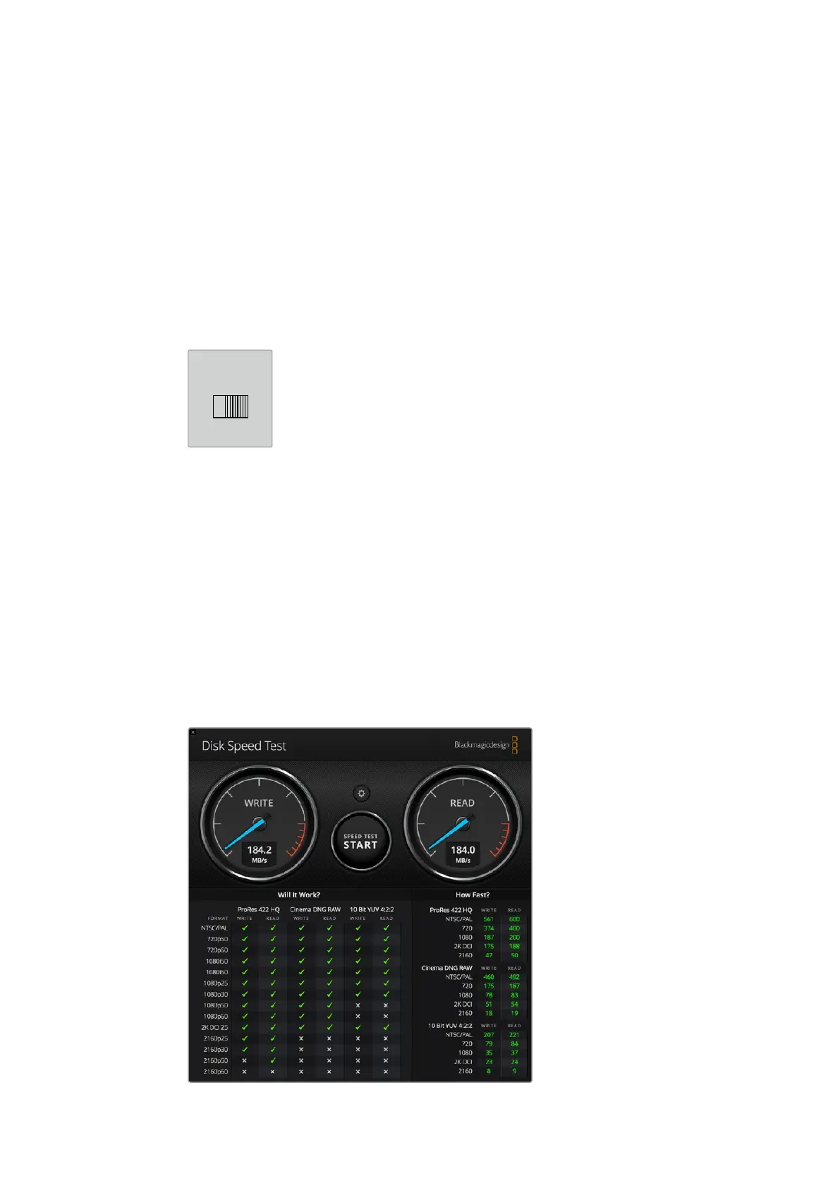 lavoro che intendi svolgere, puoi usare Blackmagic Disk Speed Test. Questo strumento è