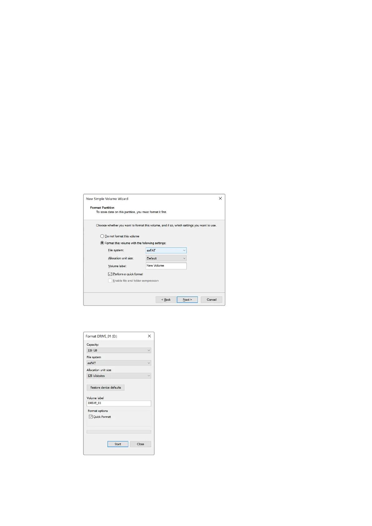 6 Defina o sistema de arquivo como exFAT. Insira um rótulo para o volume, selecione