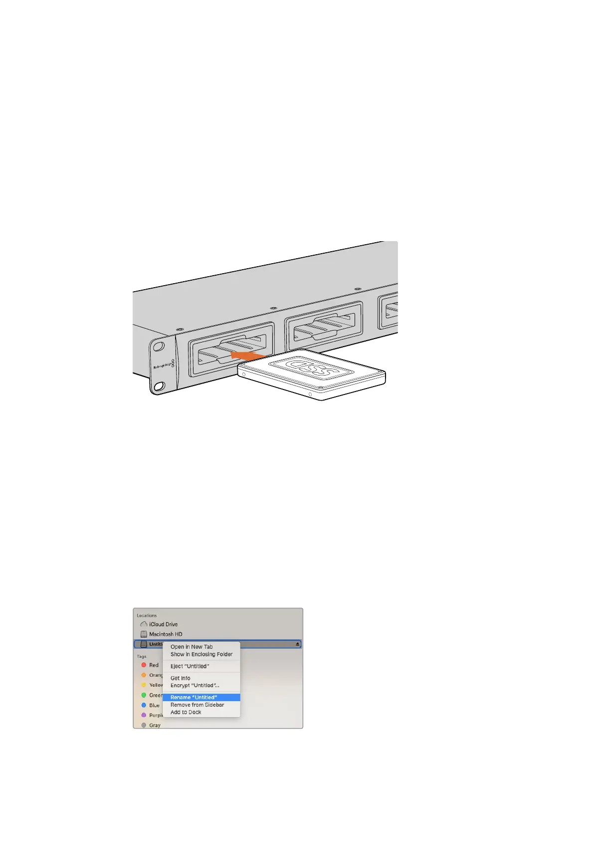SSD’leri veya HDD’leri, Blackmagic MultiDock’un 4 sürücü yuvalarından herhangi birisine yerleştiriniz.
