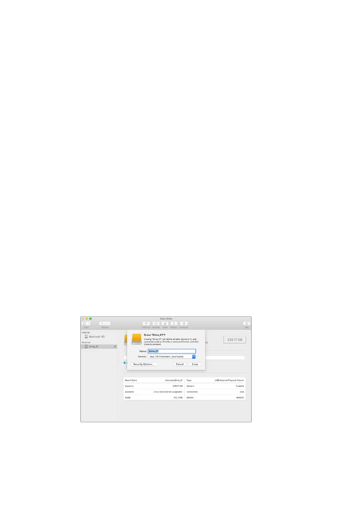 Mac OSのDisk Utilityア プ リ ケ ー シ ョ ン で 、ド ラ イ ブ を HFS+またはexFATでフォ ーマットで きま す。