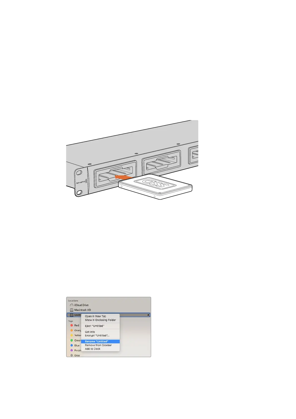 Insérez les SSD ou HDD dans l'un des 4 logements du Blackmagic MultiDock.