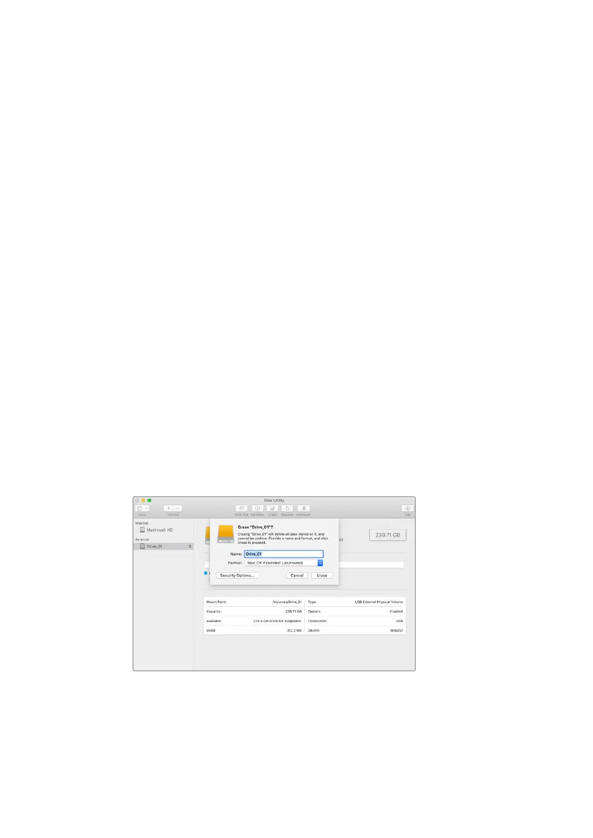 Utilice el programa Utilidad de Discos, incluido en el sistema operativo macOS, para formatear