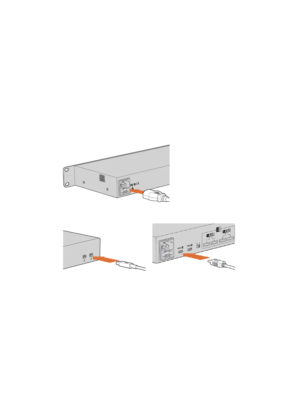 IEC 표준 케이블과 커넥터를 통해 Blackmagic MultiDock의 주 전원 입력에 전원을 연결하세요. 전원이
