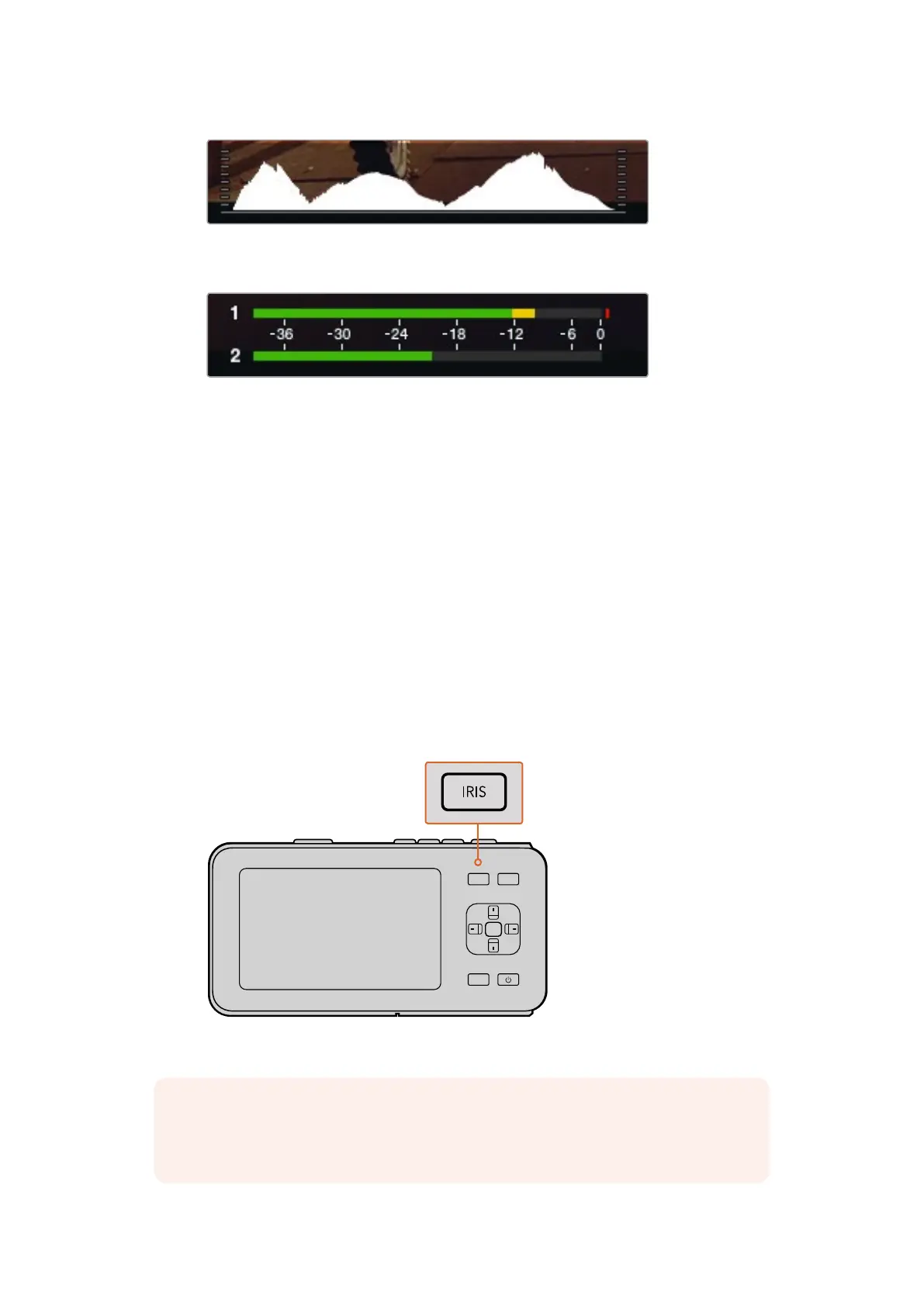 settings, pressing the ‘iris’ button sets your exposure to the brightest highlight in your shot.