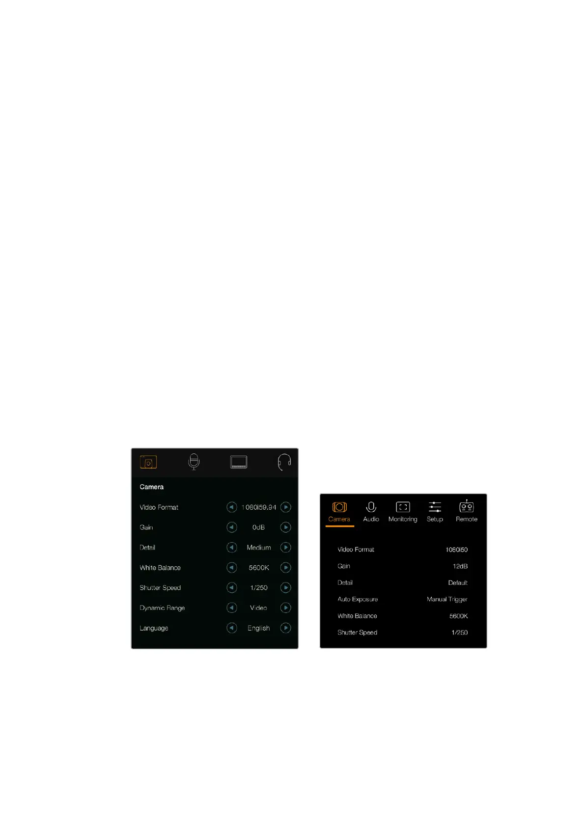 Paramètres de la caméra – Blackmagic Studio Camera Blackmagic Micro Studio Camera 4K