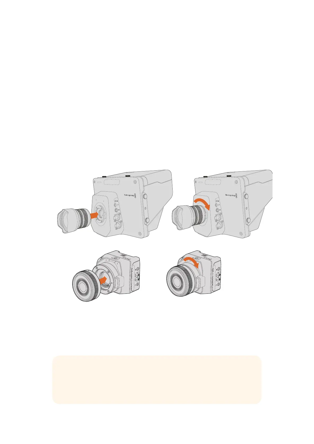 Blackmagic Studio Camera veya Blackmagic Micro Studio Camera 4K ile başlangıç, bir lens takıp