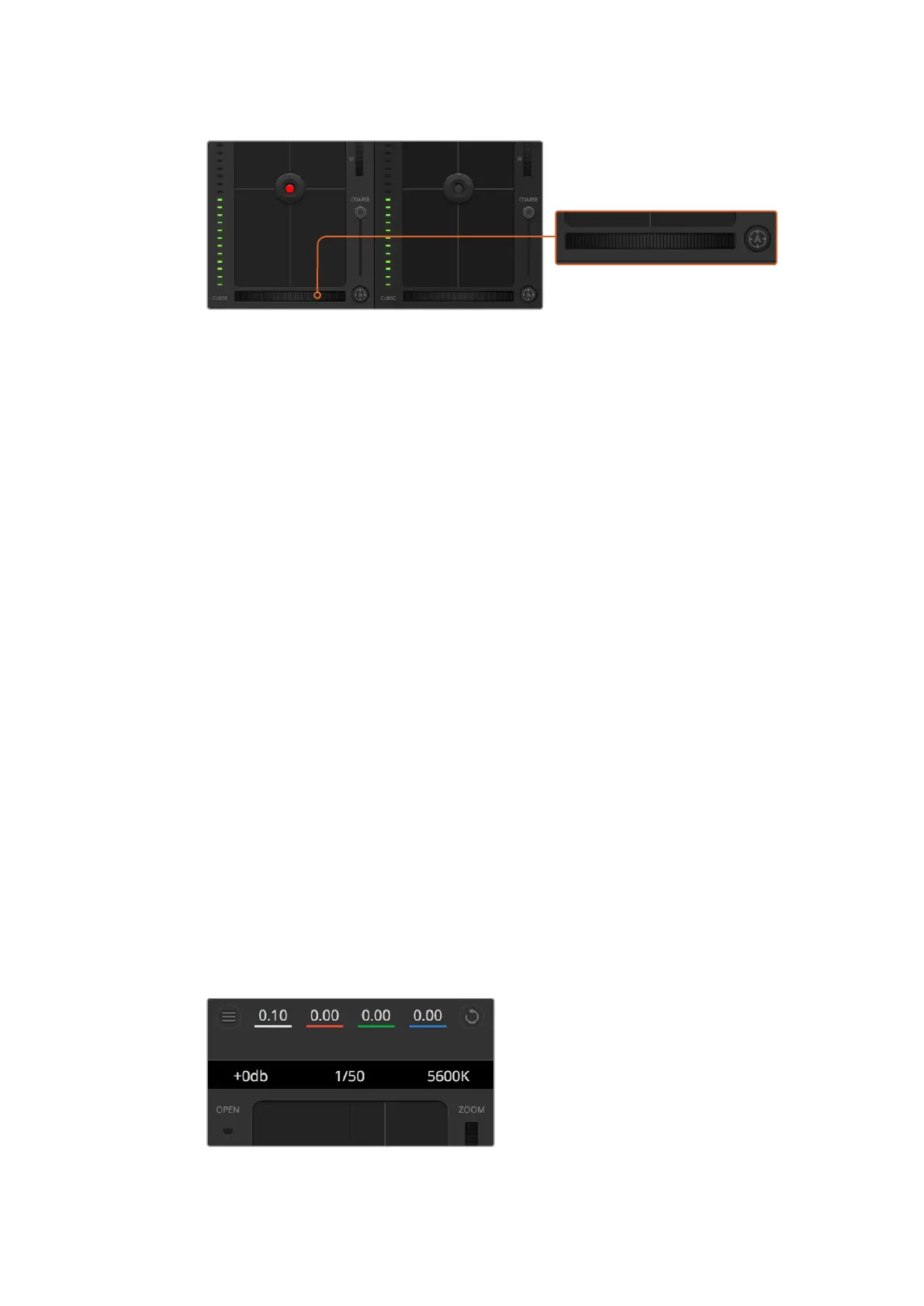 Örtücü hızı kontrolü, renk tekeri ve iris/pedestal kontrolünün arasında kalan kısımdadır. Örtücü hızını,