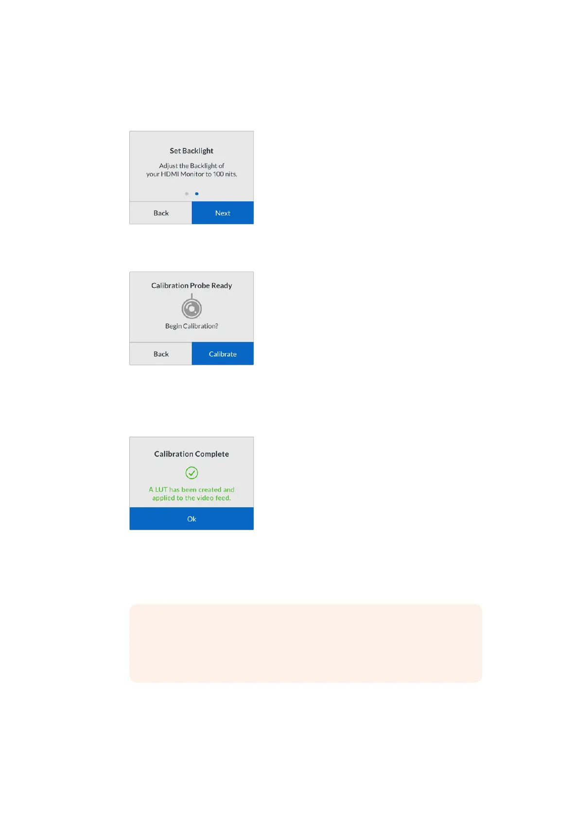 ‘Calibrate’ and press ‘set’ to start the automated color calibration sequence. 3D LUT