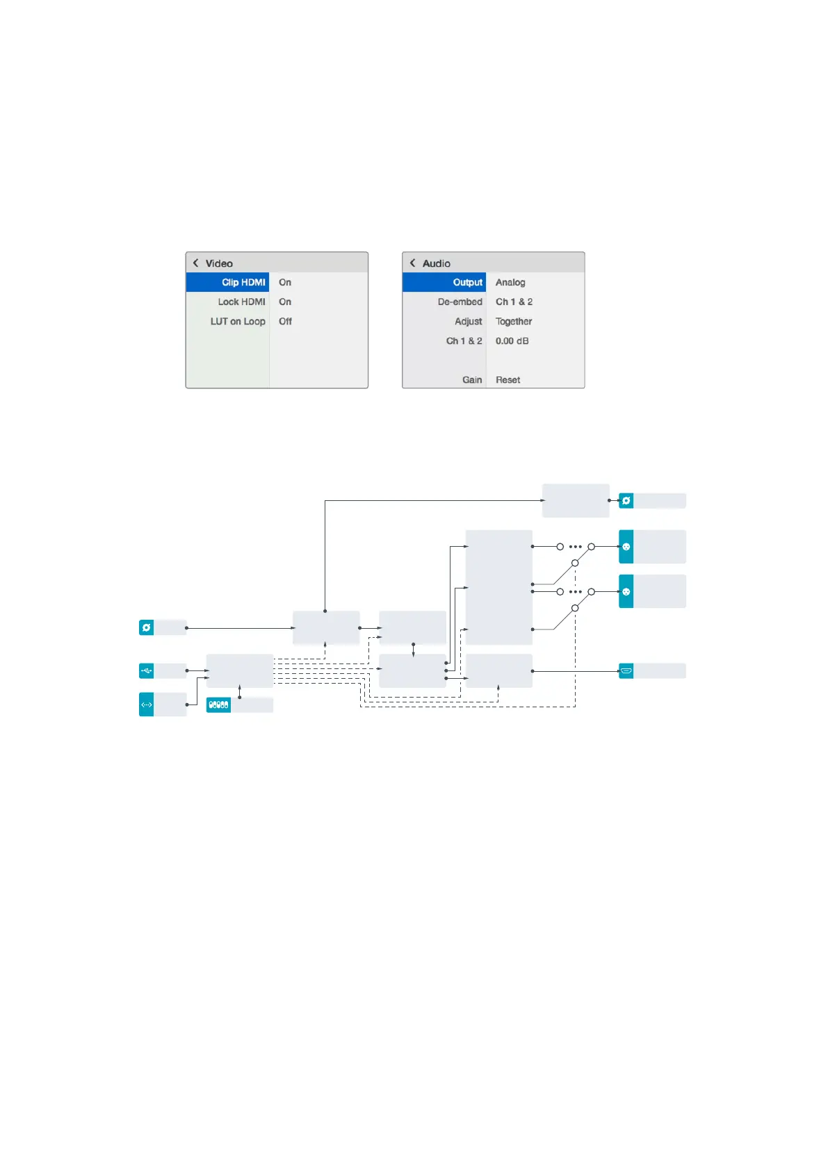 these menus are identical to those detailed in the ‘Blackmagic Teranex Setup settings’ section