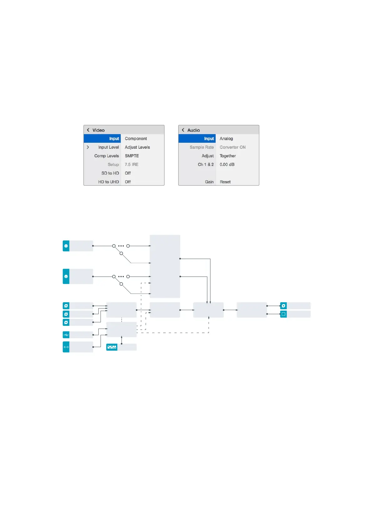 available in these menus are identical to those detailed in the ‘Blackmagic Teranex Setup