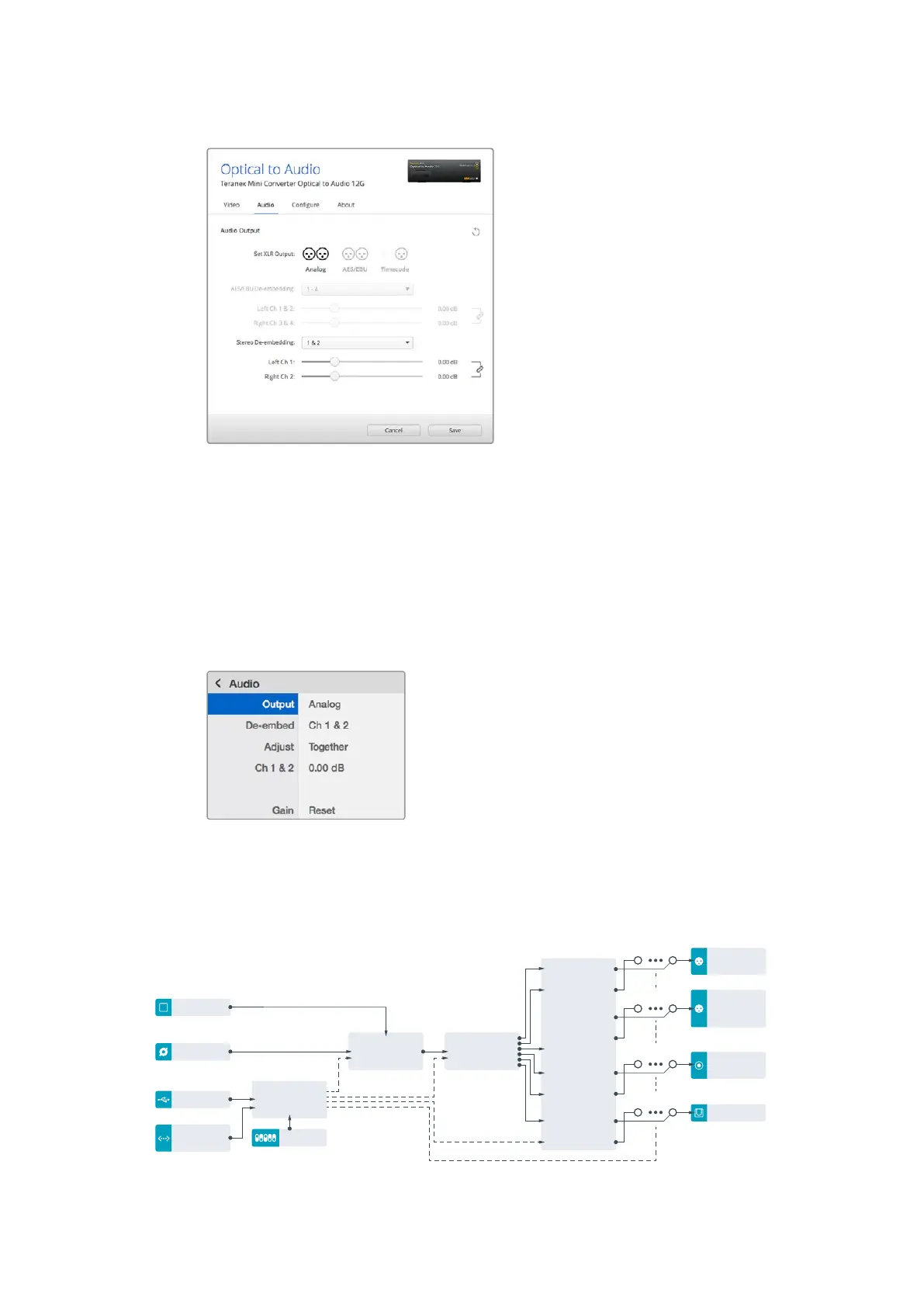 the ‘audio’ settings page in Blackmagic Teranex Setup.