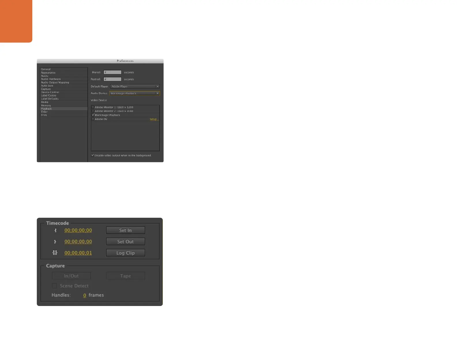 Under "Video Device," enable the checkbox for "Blackmagic Playback" and ensure the other checkboxes