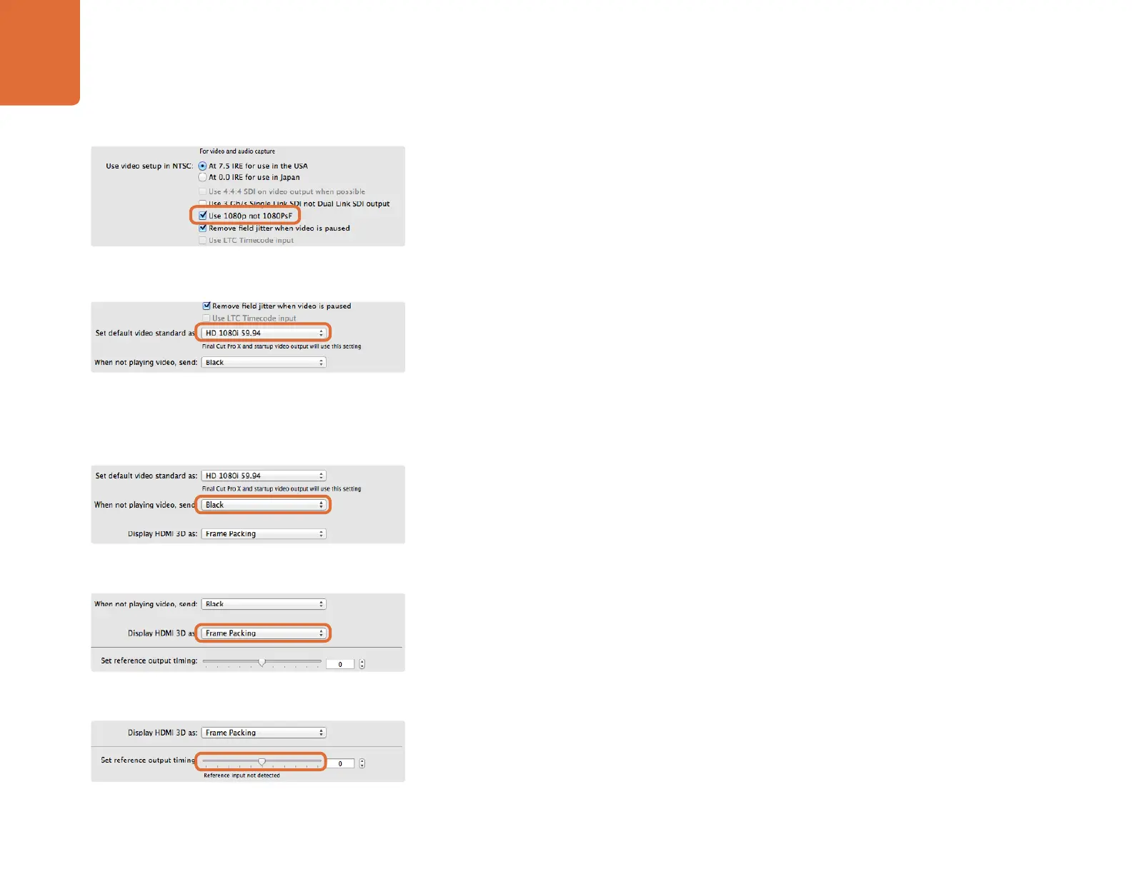 On Mac OS X, if you want to use broadcast monitoring with Final Cut Pro X, set the video standard in these