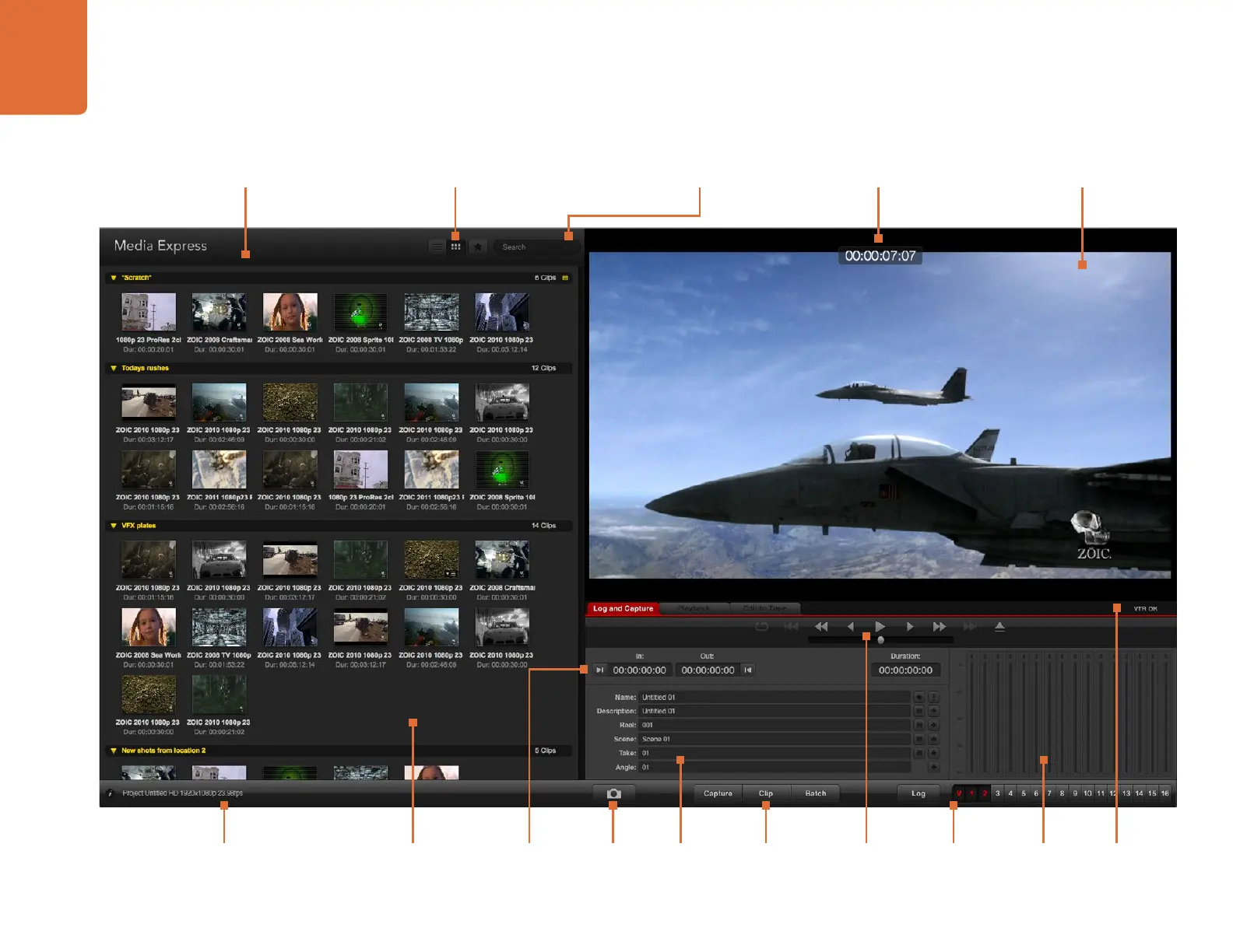 Media List Search FieldTimecode List, Thumbnail and Favorites view VTR / deck timecode Video Preview