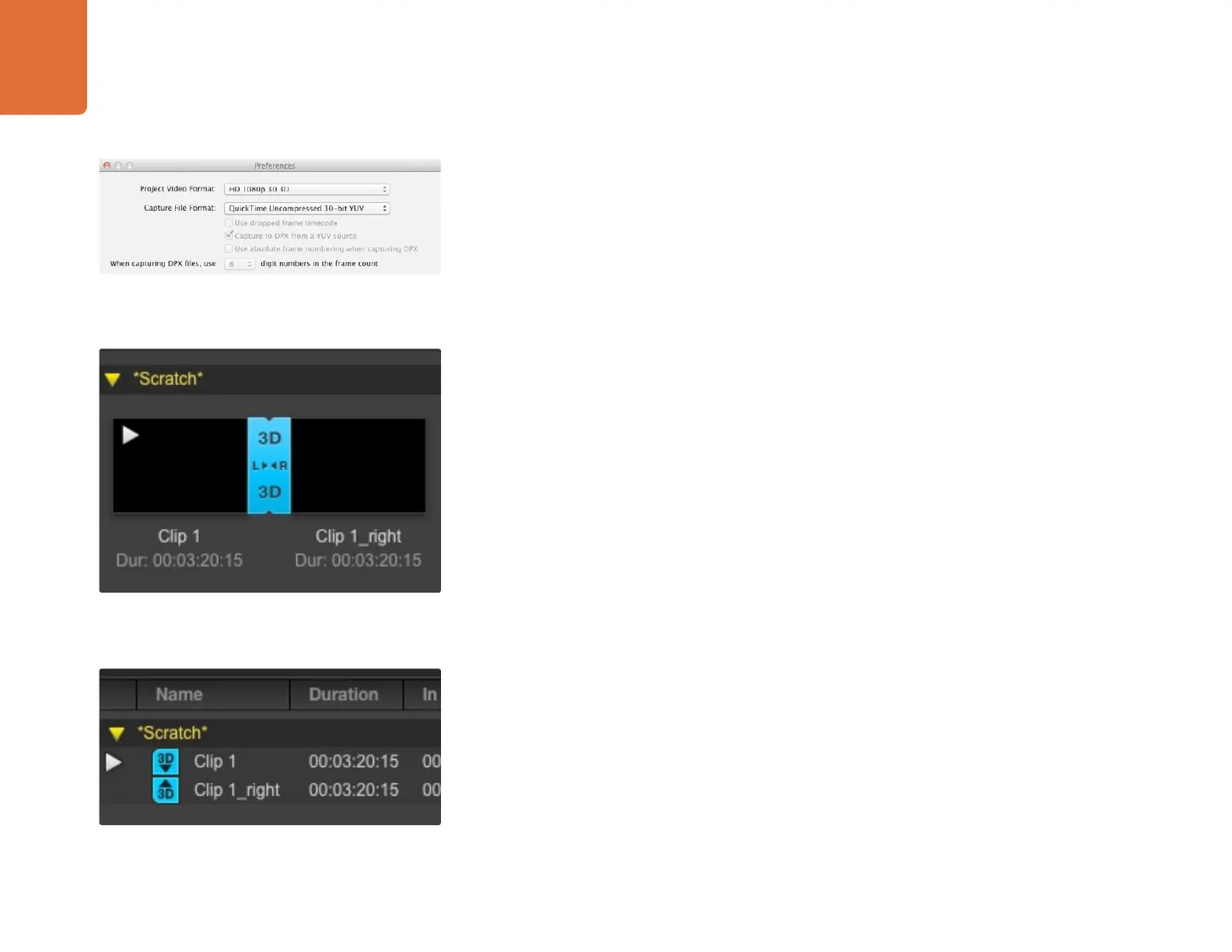 “Clip 1”, the left eye clip will be called “Clip 1.mov” and the right eye clip will be called “Clip 1_right.mov”.