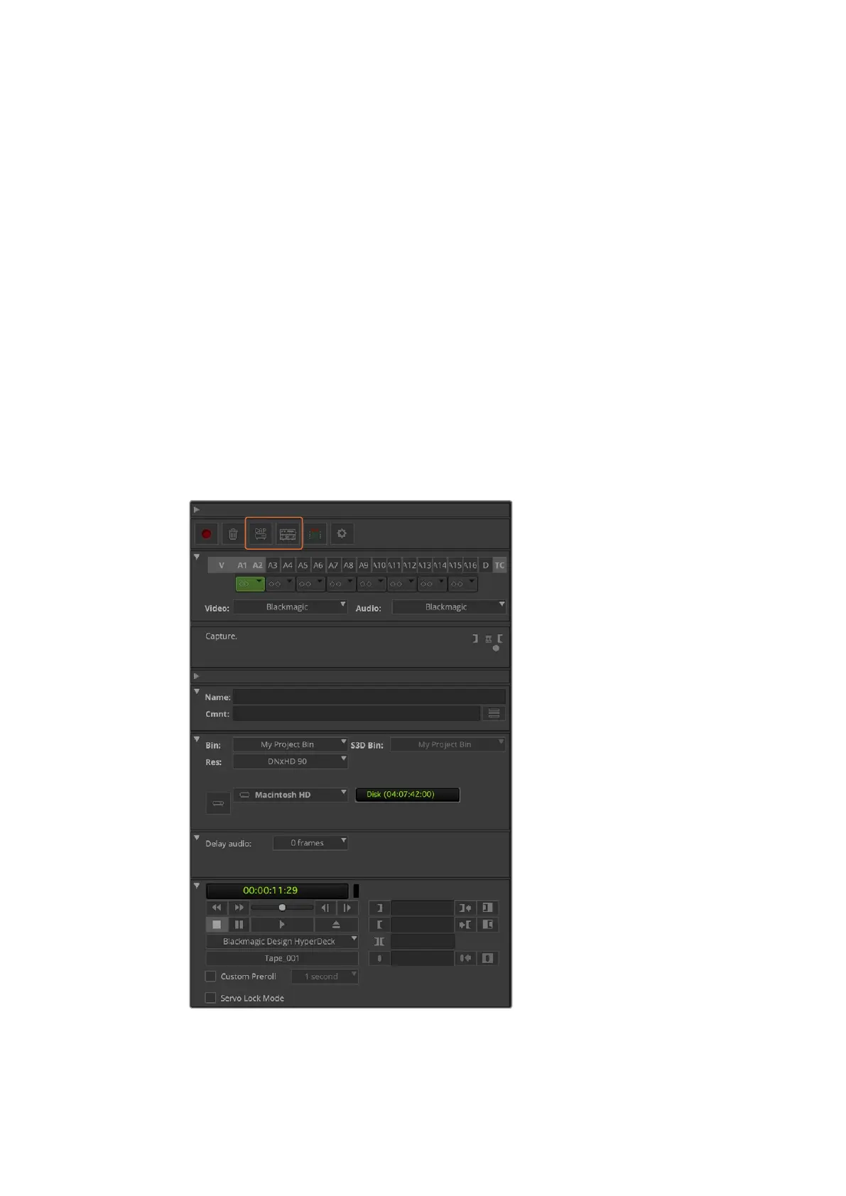 tracks, target bin, res, target drive and tape name the same way as in ‘capture from