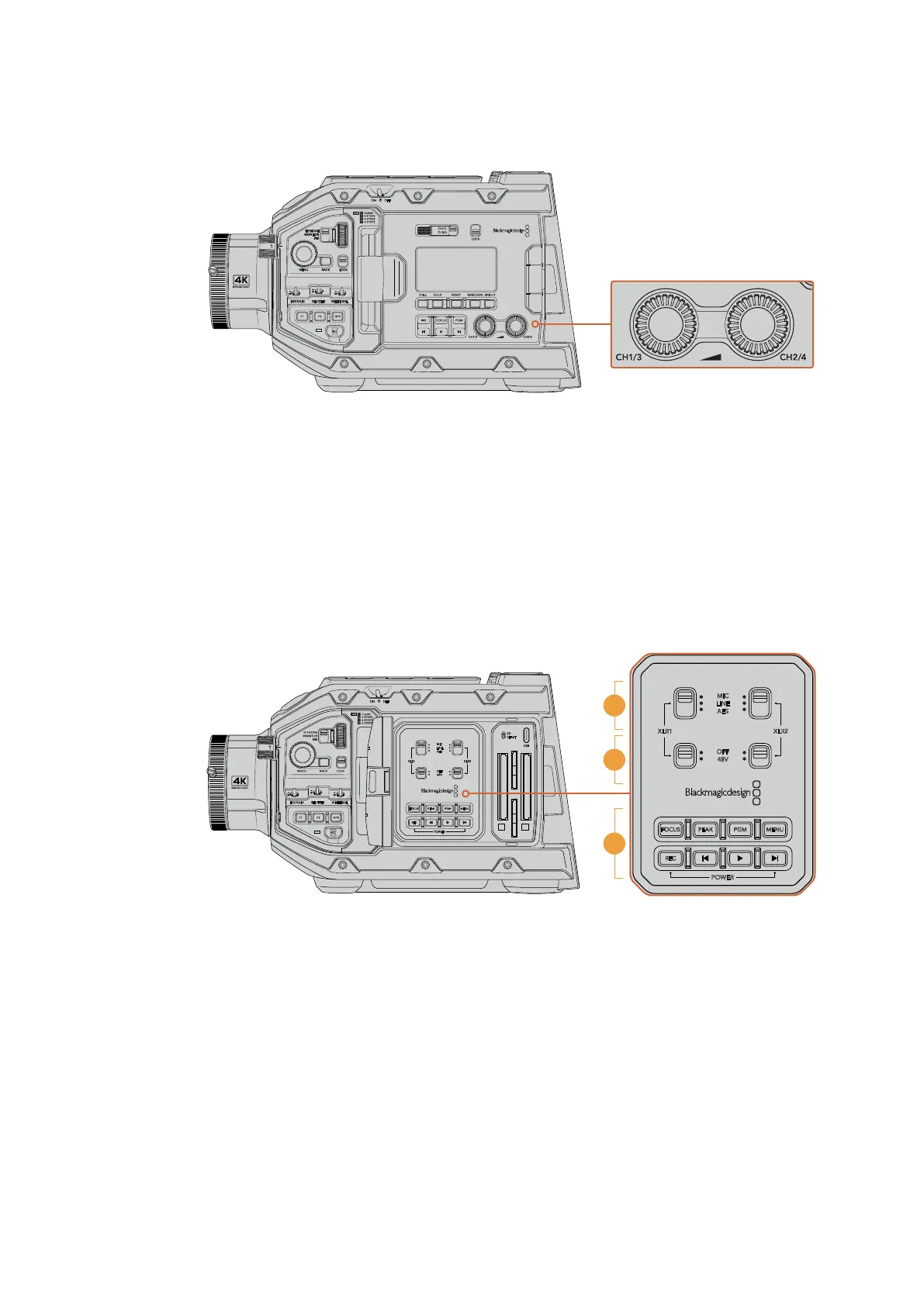 Use these switches to set how your URSA Broadcast's XLR inputs behave when