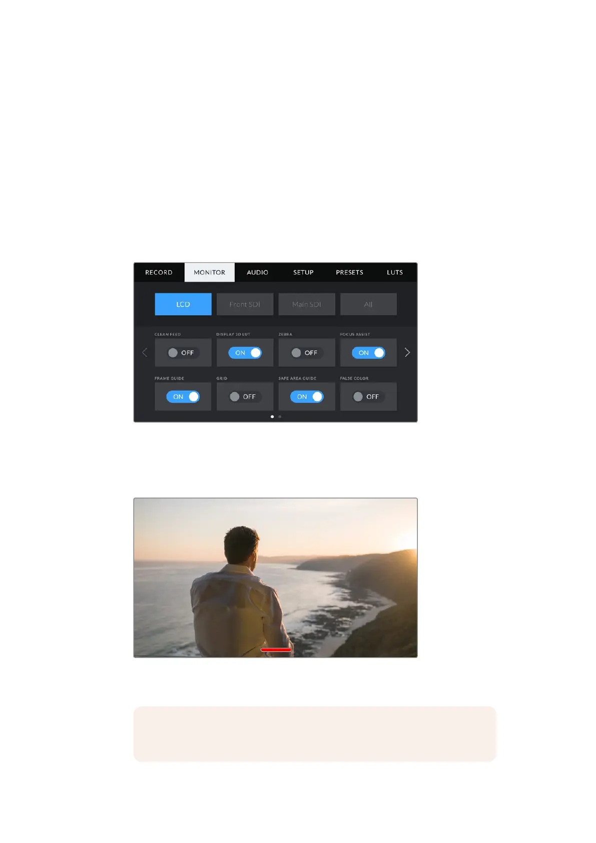 each output. Forexample, you can set 'zebra' on for the LCD touchscreen, but off the front or