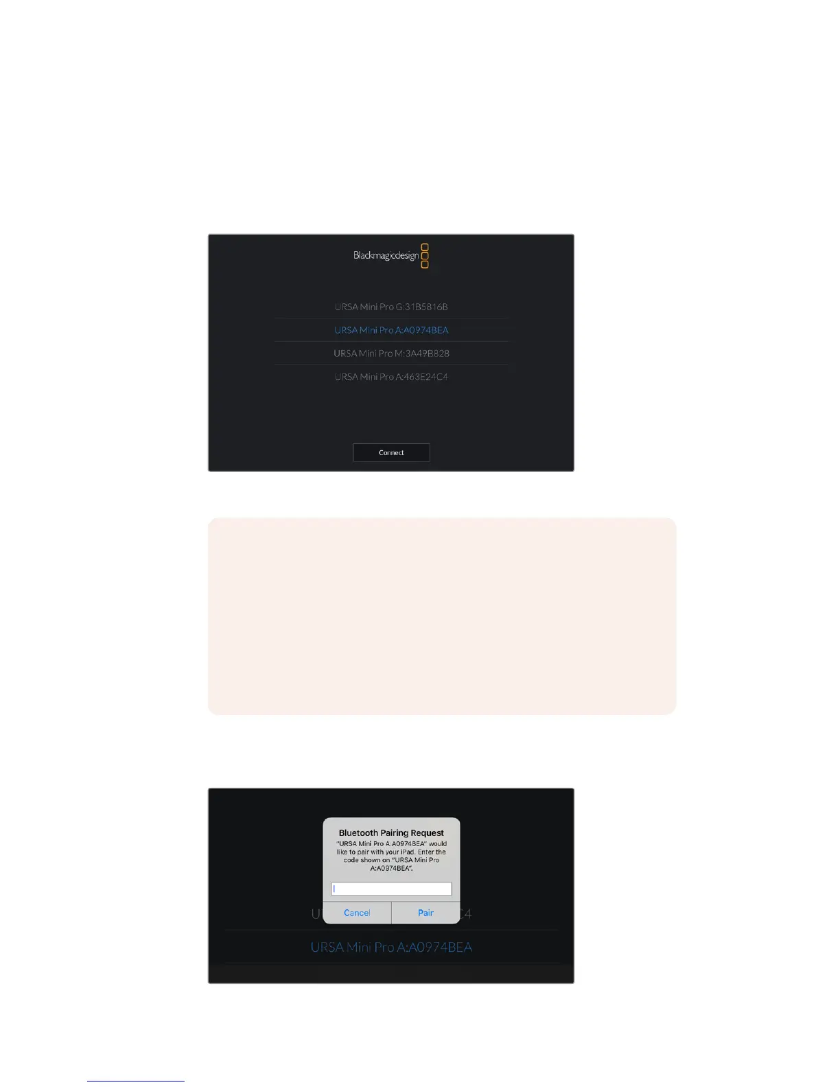 Select the URSA Mini Pro 4.6K you would like to pair with
