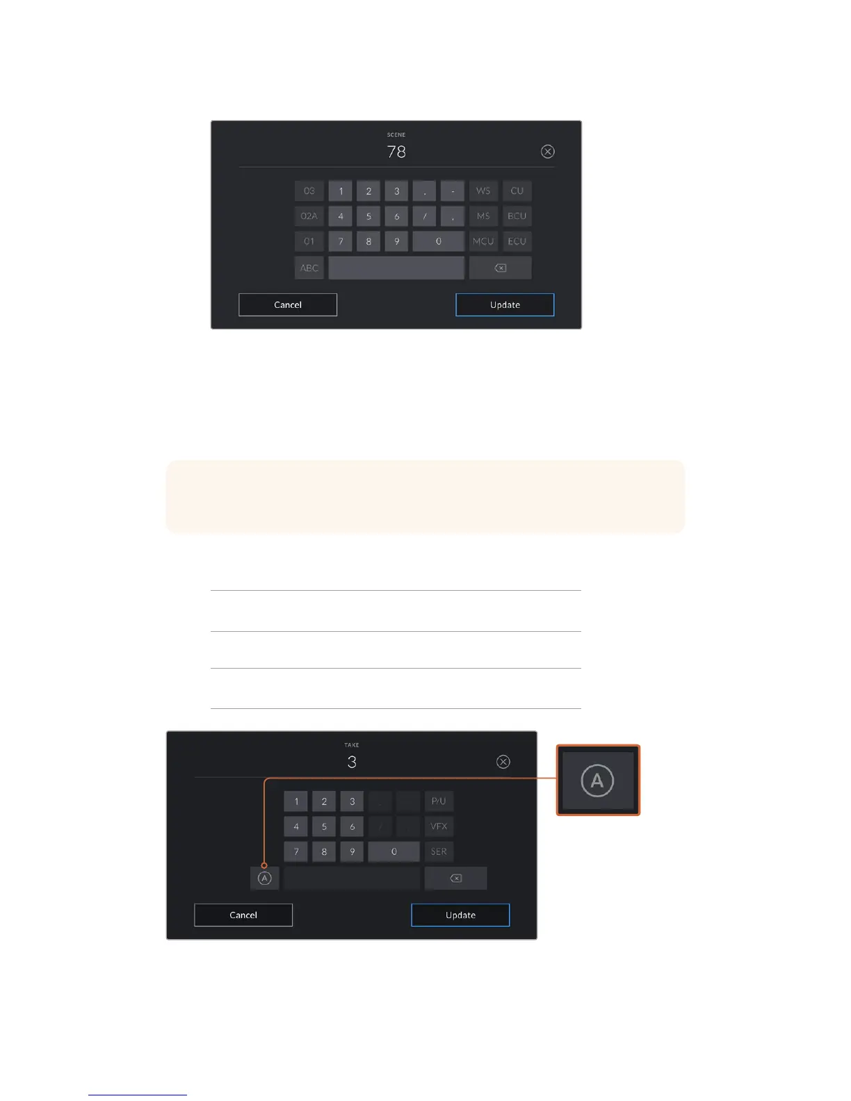 When entering 'scene' metadata, your URSA Mini will prompt you with increment