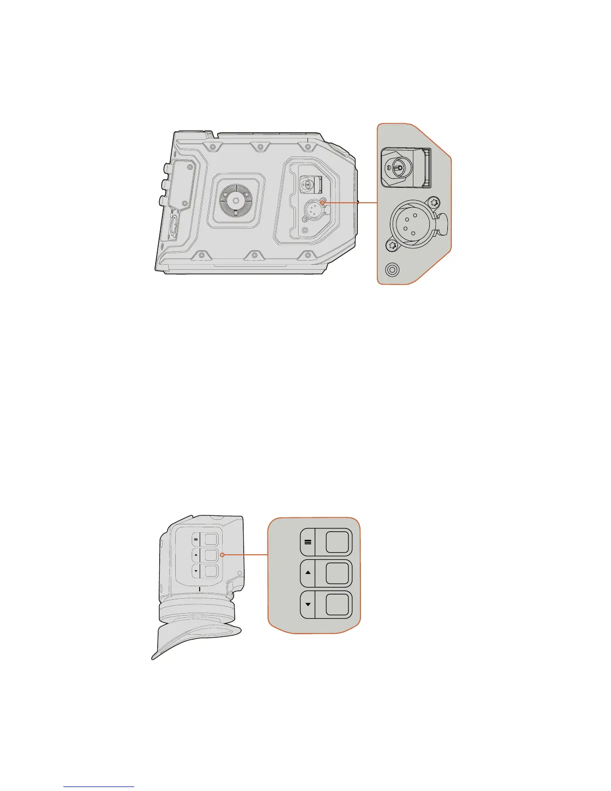 cables to URSA’s front 12V power and 3G-SDI outputs. Your URSA Viewfinder will turn on
