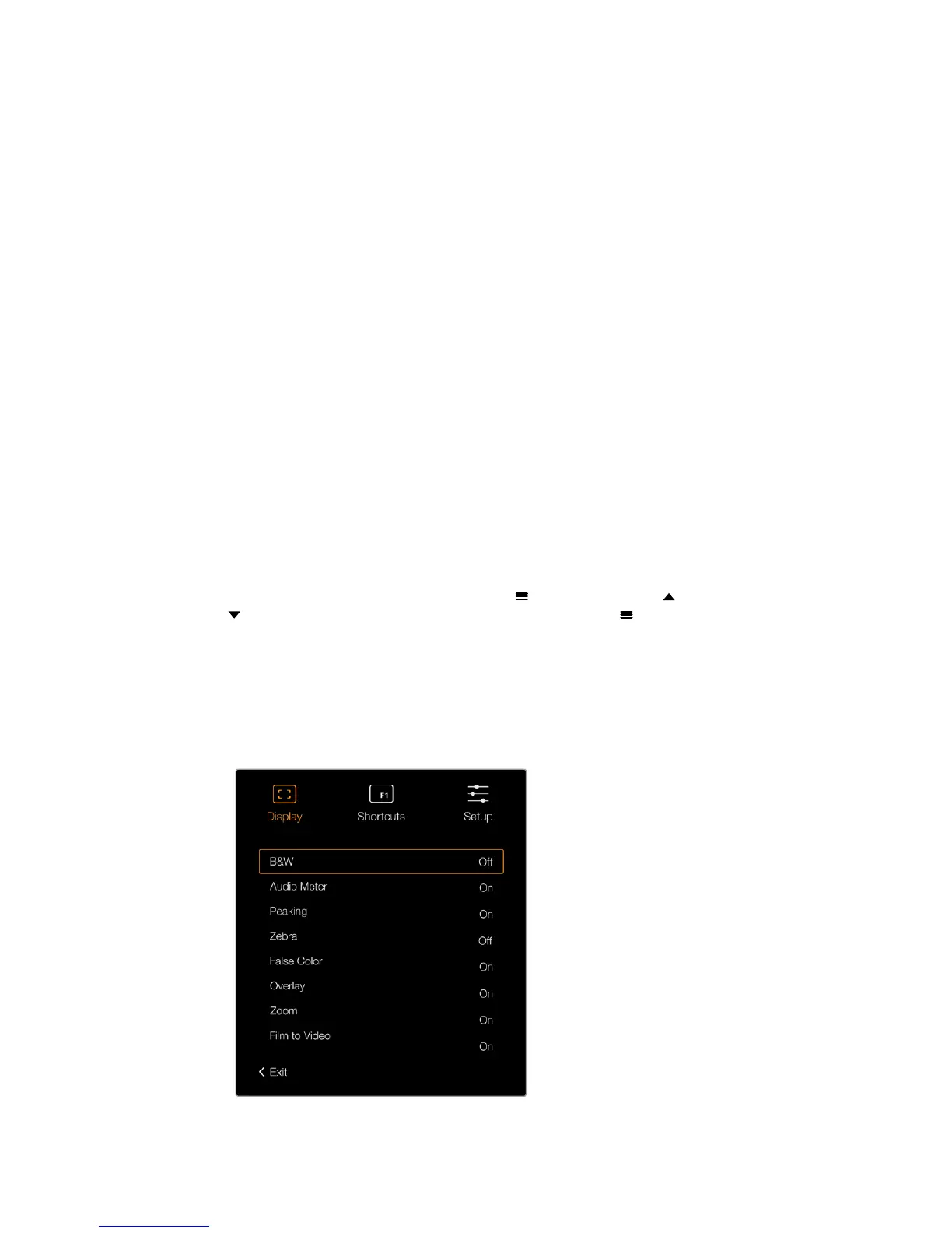 The ‘display’ menu in URSA Viewfinder