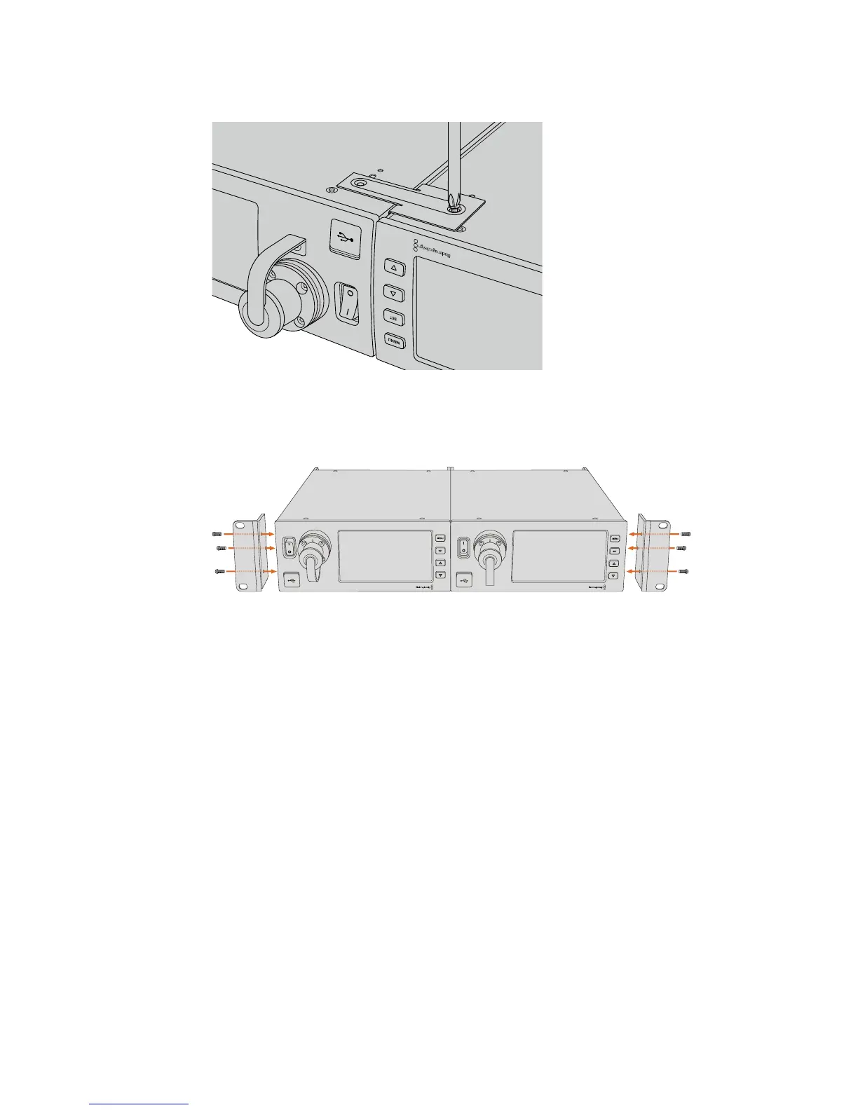 3 Turn the attached units back over and attach the rack ears to the outer edges near the