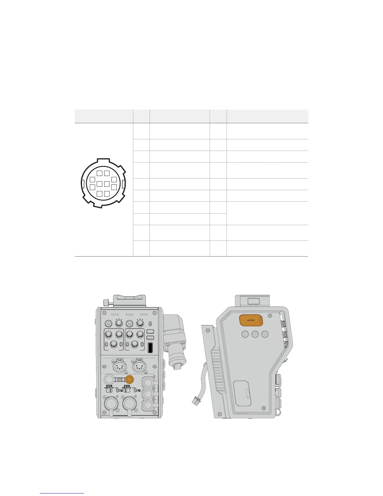 The 10 pin Hirose connector provides a multiplexed output for talkback and tally signals, plus